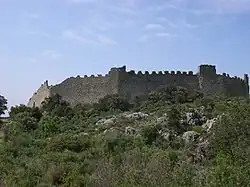 Das Dorf liegt an der Grenze zweier Landschaften: den Ausläufern des Kalksteingebiets Causse und dem Schwemmland des Hérault. Über dem Ort erhebt sich die Ruine von „Le Castellas“ (250 m)[1] sowie der Berggipfel Baudille (847 m). Es ist Kreuzungspunkt verschiedener Nord-Süd- und Ost-West-Verbindungen, wie z. B. jahrhundertealte Pilgerwege. Die Abtei von Saint Aniane liegt in der näheren Umgebung. Seit dem Mittelalter bestimmt Montpeyroux durch seine strategische und geologische Lage wirtschaftliche Prosperität. In der umliegenden hügeligen Landschaft wird Wein angebaut, die RebsorteSyrah dominiert die Rebflächen.