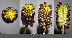 Die Hülsenfrucht ist etwa viermal so lang wie der Griffel und enthält einen Samen.