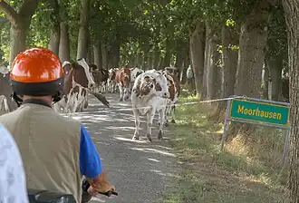 ![]() In Moorhausen wird Vieh über die Straße getrieben.