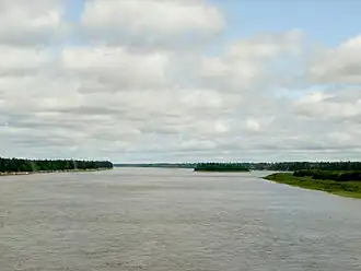 Blick auf den Moose River von der Ontario-Northland-Railway-Brücke | ||