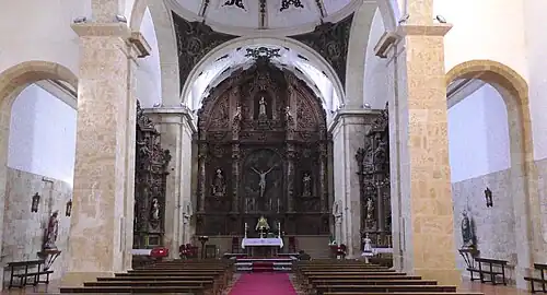 Die im 16. Jahrhundert entstandene und ursprünglich einschiffige Iglesia de Santa María Magdalena wurde im 18. Jahrhundert um zwei Seitenschiffe erweitert; aus dieser Zeit stammen wahrscheinlich auch der Glockengiebel (espadaña), der seitliche Turm mit einem Glockenkäfig, die auf Pendentifs ruhende Kuppel und die drei imposanten spätbarocken Altarretabel (retablos).