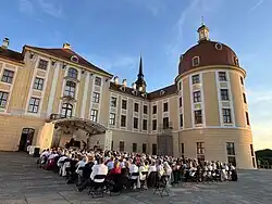 Seit der Pandemie im Jahr 2020 findet das Festival unter freiem Himmel auf der Nordterrasse von Schloss Moritzburg statt, die jetzt als Hauptspielort dient. Bei schlechter Witterung werden die Konzerte in die Kirche Moritzburg verlegt.
