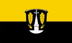 Die nichtamtliche Dorfflagge ist zweigeteilt in Gold und Schwarz; das Wappen ist in der Mitte aufgelegt.