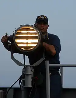 Um der Trägheit bei Glühlampen entgegenzuwirken, wurden Morsescheinwerfer mit einer Blende vor der Lichtquelle entwickelt. Die Glühlampe bleibt ständig an, wird aber durch einen Verschlussmechanismus entsprechend abgedunkelt oder geöffnet. Diese Schließklappen werden auch als Blinker bezeichnet. Die Morsesignale werden so allerdings nicht mehr rundherum, sondern nur noch in eine bevorzugte Richtung ausgestrahlt.
