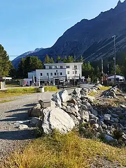 1875 eröffnete der Bergführer Valentin Kessler († 1904)[6] an der Morteratschstrasse – auf dem halben Weg nach Morteratsch – einen Verkaufsstand, ein Jahr später auch in der Nähe von Morteratsch. 1877 baute er in der Nähe des heutigen Hotels eine Unterkunft für seine Familie und Gäste und einen Kiosk. Mit dem Bau der Berninabahn (Eröffnung 1908) wurde die Unterkunft 1905–1910 ausgebaut und erhielt nun sieben Fremdenzimmer. 1949 wurde das Hotel von Chaspar Arquint aus Tarasp gekauft und zu Beginn der 1960er-Jahre weiter ausgebaut. 1983 wurde das Hotel von Hans Bertschinger übernommen und weiter investiert. Seit 1992 gehört das Hotel der Hotel Morteratsch AG[7], und das Hotel wurde umfassend renoviert.[8]