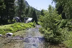 Das Campingplatzareal des Campingplatz Morteratsch befindet sich etwas über 1200 Meter vom Bahnhof/Hotel Richtung Pontresina und umfasst ca. 1 Quadratkilometer Fläche, wovon ein erheblicher Anteil Wasserfläche bzw. Naturschutzgebiet ist.