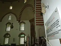 Die Moschee am zentralen Platz (Széchenyi tér) ist das am besten erhaltene islamische Bauwerk in Ungarn. In zwei Reihen an den Fassaden der Südost-, Südwest- und Nordostseite des Gebäudes sind Bogenfenster angeordnet: 3-3 und 4-4-teilig. Im Inneren sind einige türkische Verzierungen und osmanische Inschriften aus dem Koran an den erhaltenen Gipsteilen deutlich zu erkennen.