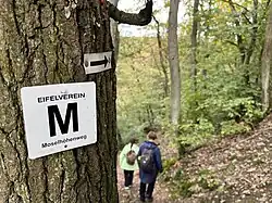 Der Weg ist mit einem „M“ beschildert.
