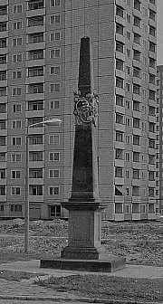 Vor dem Motel wurde 1967 die nicht originalgetreue Nachbildung einer Kursächsischen Postmeilensäule aufgestellt, und zwar der Distanzsäule vom Wilsdruffer Tor, welche von Werner Hempel angefertigt worden war,[5] und sich noch immer dort befindet. Diese erinnert an die vier Distanzsäulen, die 1722 vor den Dresdner Stadttoren aufgestellt worden waren. Eine 1997 von der Steinrestaurierung Hain aus Meißen angefertigte, originalgetreue Nachbildung dieser Säule steht auf dem Telekom-Gelände an der Herta-Lindner-Straße (heute Kreuzung Freiberger Straße/Herta-Lindner Straße) unweit des Originalstandortes.