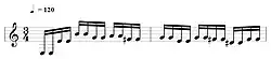 Der Gesang ist für das Genre typisches Screaming. Das Schlagzeugspiel wird von einer nahezu durchgängigen Doublebass mit unterschiedlich schnellen Blastbeats dominiert. Der Bass ist sehr leise gemischt, die Basslinie besteht nur aus dem jeweiligen Grundton. Harmonisch basiert das Lied auf dem Grundton E, die Gitarre spielt allerdings dissonante, jeweils um eine Saite versetzte Muster immer wieder, die vor allem den 7., 9. und 10. Bund der Gitarre verwenden. Die meist geshreddete erste Gitarre spielt chromatische Tonleitern. Im Lied werden zwei Gitarren verwendet, von denen eine aber im Prinzip wie das Keyboard nur die Powerchords zu den schon vom Bass gespielten Tönen spielt. Das Keyboard spielt im Hintergrund atmosphärische „Klangteppiche“, die meistens nur die Quinte, seltener aber auch die kleine Terz, die einen Moll-Akkord bewirkt, beinhalten. Der für nordischen Black Metal typische Klang nach Moll ergibt sich nicht aus gespielten Moll-Akkorden, sondern aus der Akkordfolge mit harmonisch neutralen Akkorden (Grundton + Quint), die zusammen mit den Tonleitern diesen Eindruck erweckt. Während im Hauptriff ein 6/8-Takt vorliegt, ist die Strophe und einige andere Teile im 4/4-Takt gehalten.
