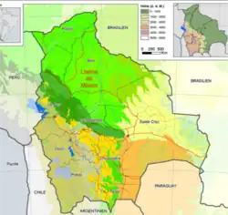 - ↑ Lombardo, Umberto; Kanal-Beeby, Elisa; und Norwich, Heinz Velt, (2011), "Ökoarchäologische Regionen im bolivianischen Amazonas", Geographica Helvetica, Bd. 66, Nr. 3, p. 179