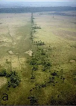 Region drei. Westlich der Stadt Trinidad, um die Stadt San Ignacio de Moxos herum, befindet sich ein Gebiet, in dem die Böden verhältnismäßig fruchtbar sind. Hier wurden zahlreiche Erdwerke gefunden: vor allem Hügel, künstliche Waldinseln, Hügelfelder und Dämme. Die hohe Zahl von Erdwerken und ihre Vielfalt deuten darauf hin, dass hier eine Gesellschaft mit einer komplexeren Sozialstruktur existierte als in den Regionen eins und zwei.[18]