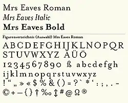 Mrs Eaves ist eine Schriftart der US-amerikanisch-tschechischen Designerin und Schriftentwerferin Zuzana Licko.