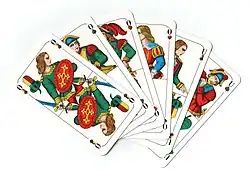 | Eichel/Ecker | Grün/Gras | Herz | Schellen |