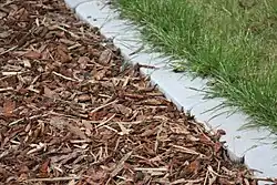 - Rindenmulch: kohlenstoffhaltig. In Staudenbeeten und unter Sträuchern setzt man auch Rindenmulch aus zerkleinerter Rinde von Nadelbäumen, meist Fichten ein. Das Material sollte ausreichend lange, d. h. mindestens drei Monate abgelagert sein, um sicherzustellen, dass die phytotoxisch wirksamen Inhaltsstoffe der Rinde und des Baumharzes wie Gerbstoffe und Tannine bereits abgebaut wurden.