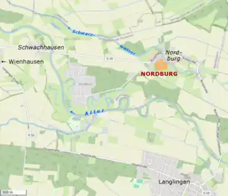 Bei der Gründung der Burg mündete die Oker allerdings nicht bei Müden in die Aller, sondern bei Wienhausen. Daher vermutet der Siedlungsgeograph Wolfgang Meibeyer, die Oker sei bei der Gründung der Burg noch nicht bei Müden in die Aller gemündet, sondern bei Wienhausen. Daher entspreche die chronikalische erwähnte Mundburg der Nordburg, gelegen nördlich der Aller am Schwarzwasser, östlich von Wienhausen und nördlich von Langlingen. Spätestens 1439 gelang der Durchstich der Oker nach Norden bis Dieckhorst, eine Notiz in einer Urkunde des Rates zu Magdeburg weist darauf hin. Das erklärt auch, warum es entlang der neuen Okerlinie keine Dünen gibt. Gegen eine so späte Verlagerung der Okermündung spricht allerdings der Ortsname Müden, denn dieser Ortsname bedeutet „Mündung“ (Vgl. niederländisch -muiden, z. B. in IJmuiden).