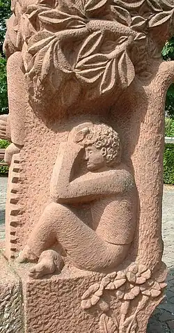 - Säule mit Schlüssel: Petrusschlüssel im Ortswappen; Erinnerung an die Gründung einer Petruskirche unter der Herrschaft des Klosters Weißenburg
