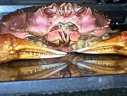 Bei den Krebstieren (Crustacea) tragen die ersten beiden Kopfsegmente je ein Paar Antennen. Direkt vor der Mundöffnung liegt die Oberlippe. Wie bei den anderen Mandibeltieren (zu denen die Krebstiere und Tracheentiere zusammengefasst werden), ist die Basis der Extremität des dritten Kopfsegmentes zu einer kräftigen Kaulade (Mandibel, Oberkiefer) umgewandelt. Auch die beiden folgenden Extremitätenpaare stellen Mundwerkzeuge dar, die als Maxille I und II (Unterkiefer und Unterlippe) bezeichnet werden. Sie umstehen die Mundöffnung. Sie lassen noch den Grundbauplan des Spaltfußes erkennen, bei dem dem Basispodid ein Endopodit und ein Exopodit aufsitzt. Bei Mandibel und den beiden Maxillenpaaren ragen vom Stamm nach innen gezähnte Vorsprünge, die Kauladen. Von Exopodit und Endopodit können beide, einer oder keiner noch als Taster erhalten sein. Bei verschiedenen Gruppen innerhalb der Krebse werden weitere Extremitäten als Mundwerkzeuge benutzt, die dann als Maxillipeden (Kieferfüße) bezeichnet werden. Beim Flusskrebs folgen beispielsweise auf Maxille II noch drei Paare von Kieferfüßen dann der Scherenfuß. Auch dieser kann Nahrung ergreifen, zerkleinern und an die Kiefer weitergeben.