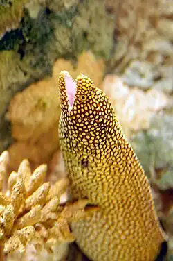 - ↑ Marco Lichtenberger: Muränen, in KORALLE, Meerwasseraquaristik-Fachmagazin, Nr. 56 April/Mai 2009, Natur und Tier Verlag, Münster, ISSN 1439-779X