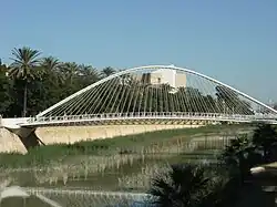 Mehrere Brücken führen über den Segura, darunter die Puente de los Peligros (Brücke der Gefahren), eine Steinbrücke aus dem 18. Jahrhundert mit einer Marienkapelle auf einer Seite, sowie moderne Brücken, die von Santiago Calatrava und Javier Manterola entworfen wurden und die Stahlbrücke Puente Nuevo aus dem frühen 20. Jahrhundert.