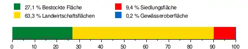 Es besteht zu 27,1 % aus bestockter Fläche, zu 63,3 % aus Landwirtschaftsfläche, zu 9,4 % aus Siedlungsfläche und zu 0,2 % aus Gewässerfläche.