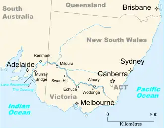 Zu den wichtigen Städten, die am Lauf des Murray liegen, gehören Albury, Swan Hill, Echuca, Mildura und Murray Bridge.