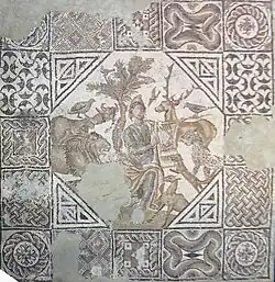 • Das „Mosaik des Orpheus“ (Mosaïque d’Orphée) wurde 1934 von MArcelin, Boyer freigelegt. Es wird auf das 3. bis 4. Jahrhundert datiert.[24]