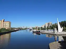Das auf dem Kai ausgestellte Flugboot Berijew Be-12 Tschaika (Möwe, russisch Бериев Бе-12 Чайка) konnte auf dem Wasser und auf festem Untergrund starten und landen. Entwickelt wurde es als militärischer Seeaufklärer zur See- und Küstenüberwachung, zur Suche nach Bodenschätzen, zur U-Boot-Jagd und zur Seenotrettung. Dieser Typ ist weiterhin in Betrieb. |