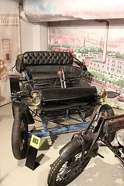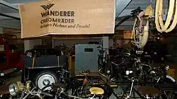 ![]() Frühe Motorisierung (1885–1918) Hochrad von Wanderer (1888) ![]() Phänomen 5,5 PS (1907) ![]() Wanderer 3 PS (1910) ![]() Polymobil (1903) Magnet Selbstfahrer (1911) ![]() Wanderer Puppchen (1913) |