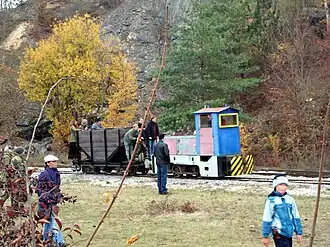 Im Steinbruch wurde ein Gleis mit einer Spurweite von 600 mm verlegt. Bis 1929 wurden die Loren manuell bewegt. 1930 wurde die erste T 290 Benzinlok gekauft und nach dem Zweiten Weltkrieg kamen hier Stavoloko BNE 25 Lokomotiven zum Einsatz. Die Fahrzeugflotte bestand aus Kipploren und Loren mit Holzrahmen.