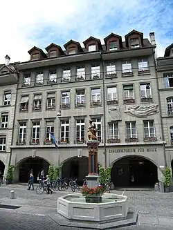 Das Konservatorium an der Kramgasse mit Simsonbrunnen im Vordergrund