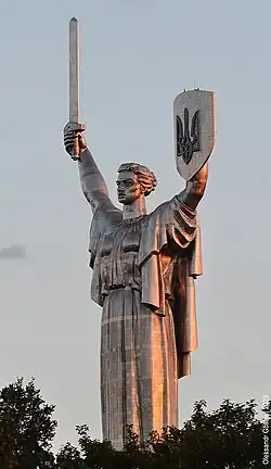 - ↑ Ukrainischer Dreizack an Mutter-Heimat-Statue in Kyjiw angebracht. In: ukrinform.de. 6. August 2023, abgerufen am 6. August 2023.
