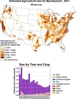 - ↑ Generaldirektion Gesundheit und Lebensmittelsicherheit der Europäischen Kommission: Eintrag zu Myclobutanil in der EU-Pestiziddatenbank; Eintrag in den nationalen Pflanzenschutzmittelverzeichnissen der Schweiz, Österreichs und Deutschlands, abgerufen am 6. April 2023.
