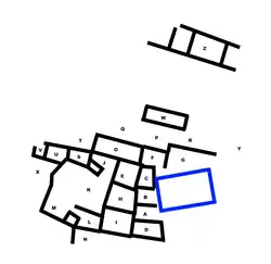 In Komplex Y, im Osten von Raum G, diente der Herstellung von Stoffen wie hier aufgefundene Webgewichte zeigen. Im Norden von Raum G stand Gebäude W, dass durch eine Straße von ihm getrennt war. Hier fand man nur einfache Gebrauchskeramik, weshalb man es als Lagergebäude einstufte. Im Westen des Ausgrabungsgeländes befindet sich ein Gebäudekomplex mit einem großen Innenhof K. Über Raum J, der mit dem Innenhof verbunden war, konnte Raum E erreicht werden. Er war mit Steinplatten gepflastert. In der Mitte gab es eine runde Basis für eine Holzsäule, dei das Dach trug. Im ganzen Raum waren Splitter eines Larnax verteilt. Das wannenförmige Keramikgefäß diente vermutlich der Reinigung vor der Ausübung religiöser Handlungen. Raum H, der im Osten an Raum A stößt, war im Norden über eine Tür mit Raum E verbunden. In späterer Zeit wurde diese jedoch zugemauert. Hier fand man Essensreste, Gebrauchs- und Feinkeramik hauptsächlich aus SH III B. In einer Schicht direkt über dem anstehenden Fels fand man zwei Fragmente von Vaphio-Bechern aus SH II. Bemerkenswert ist ein mit Putz überzogener rechteckiger Kalkstein von 9,5 cm mal 5 cm mit einer Dicke von 2 cm mit Bemalung. An der Schmalseite sind rote Bänder erhalten. Auf der Vorderseite ist in einem ovalen mit Doppellinien eingefasster Bereich ein achtförmiges Schild abgebildet. Daneben ist eine stehende weibliche Figur dargestellt. Alle weiteren Räume, die sich um den Innenhof gruppierten, dienten praktischen Belangen, wie der Lagerung und der Speisenzubereitung. Der Innenhof wurde in christlicher Zeit als Begräbnisstätte genutzt.