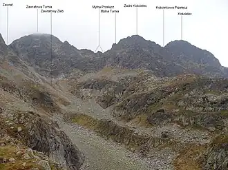Unterhalb des Gipfels liegen zwei Täler, die Dolina Zielona Gąsienicowa im Süden und Dolina Czarna Gąsienicowa in Norden.