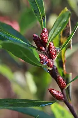 - ↑ Chipem Vashi, Uma Shankar, Arvind K. Misra: A reinstatement and a new combination in Morella subgenus Morella (Myricaceae), with typification of Myrica integrifolia. In: Phytotaxa, Volume 299, Issue 2, 21. März 2017. doi:10.11646/phytotaxa.299.2.5