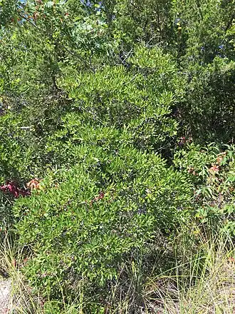 Myrica pensylvanica verfügt über Wurzelknöllchen, die stickstofffixierende Mikroorganismen enthalten und ihr so erlauben, auf relativ nährstoffarmen Böden zu wachsen.