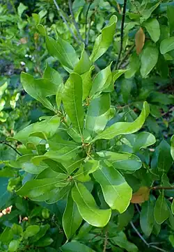 Myrica pensylvanica ist eine der Myrica-Arten, die z. B. vom Integrated Taxonomic Information System[2] in der Gattung Morella geführt wird (Syn.: Morella pensylvanica).