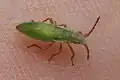 Die Wanzen werden 6,5 bis 9,0 Millimeter lang.[2] Sie haben einen langgestreckten, schlanken und weitgehend unbehaarten Körper, der ihnen Ähnlichkeit mit Weichwanzen (Miridae) verleiht. Es gibt bei den Männchen zwei Farbmorphen. Eine grüne, rot gemusterte und eine braune. Die Weibchen sind fast[2] immer grün. Letztere können auch durch ihre größeren Körper und den ovaleren Körperbau von den Männchen unterschieden werden. In der Regel haben die Tiere verkürzte (brachyptere) Flügel,[3] voll geflügelte (makroptere), flugfähige Tiere sind selten.[2]