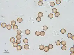 Die Sporen sind haploid, meist rund und messen zwischen 5 und 20, selten bis 24 Mikrometer im Durchmesser. Ihre Oberfläche ist üblicherweise netzartig, gratig, warzig bis stachelig strukturiert, nur sehr selten ist sie glatt. Durch die Struktur entsteht zugleich die wahrgenommene Färbung der Sporenmasse, die Sporen sind nicht pigmentiert. Bei einigen Arten (besonders bei Arten der Gattung Badhamia) bilden die Sporen Klumpen. Die „Farbe“ der Sporen, ihre Form, die Skulpturierung sowie der Durchmesser sind wichtige Merkmale zur Bestimmung.[2]