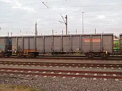 Güterwagen mit Aufschrift von NACCO am Bahnhof St. Valentin (2018)