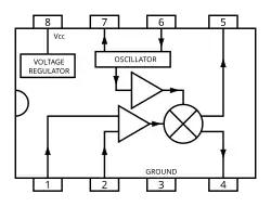 Der NE612 ist eine integrierte Schaltung von Philips Semiconductors, die einen Oszillator und als Mischstufe eine sogenannte Gilbertzelle umfasst.[1]