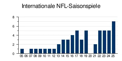 Am 13. Dezember 2023 wurde bekanntgegeben, dass 2024 das erste Spiel in Sao Paulo in Brasilien stattfinden soll.[16] Am 9. Februar 2024 gab die NFL bekannt, dass in der Saison 2025 ein Spiel im Estadio Santiago Bernabeu im spanischen Madrid ausgetragen wird.[17] Bei der Renovierung des Stadions von 2020 bis 2024 wurde eine entsprechende Nutzung bereits eingeplant.[18] Mit Berlin wurde vertraglich festgelegt, dass 2025 ein erstes Spiel im Olympiastadion ausgetragen wird; zwei weitere kommen bis 2029 hinzu.[19][20] Ebenfalls 2025 wird erstmals ein Spiel in der irischen Hauptstadt Dublin ausgetragen.[21]