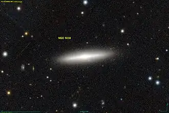 NGC 5038 ist eine 13,5 mag helle Linsenförmige Galaxie vom Hubble-Typ S0 mit aktivem Galaxienkern im Sternbild Jungfrau auf der Ekliptik. Sie ist schätzungsweise 94 Millionen Lichtjahre von der Milchstraße entfernt und hat einen Durchmesser von etwa 45.000 Lichtjahren.