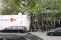 Die Berichterstattung der Medien war durch die lange Dauer und Komplexität des Verfahrens beeinträchtigt. Zu Beginn des Prozesses dominierten laut Nanett Bier oberflächliche bis diskriminierende Begriffe wie „NSU-Show“ oder „Zschäpe-Braut“. Durch die Fixierung auf die Person Zschäpe sah Hans Leyendecker die Gefahr, die eigentlichen Skandale zu ignorieren. Als beispielhaft für genaues Hinsehen führte die Medienwissenschaftlerin Tanja Thomas den NSU-Prozess-Blog bei Zeit Online und NSU-Watch an. Insgesamt sei aus den Sprachmustern der ersten Wochen gelernt worden, wie Reflexionen der Journalisten und eine Sensibilisierung gegenüber den Opferangehörigen zeigten.[116] Dagegen befand eine linguistische Analyse, dass sowohl Akteure des Prozesses als auch dessen Berichterstatter die Wir/Ihr-Dichotomie sprachlich weiterführten, die die Betroffenen vor der NSU-Selbstenttarnung kriminalisiert und ausgegrenzt hatte.[117] In Griechenland wurde der Prozess wegen des zeitgleichen Verfahrens gegen die Partei Goldene Morgenröte verstärkt wahrgenommen; in türkischen Medien nahm das anfänglich große Interesse ab und wurde weitgehend durch Spekulationen über einen tiefen Staat in Deutschland verdrängt.[118]
