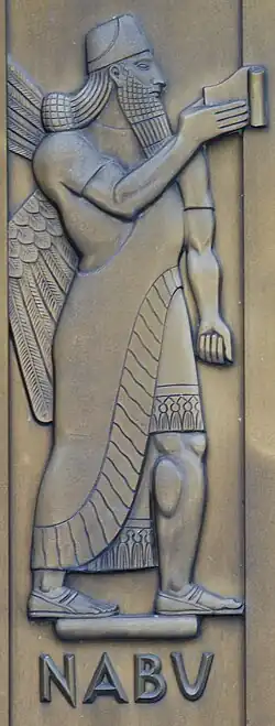 Nabu war der Gott der Schreibkunst und der Weisheit. In der babylonischen Überlieferung wurde er auch als „Nachtsonne der Unterwelt“ und „Träger der Krone“ in Borsippa bezeichnet. Als Gott der Macht gab er das Zepter an die Könige. Er war Sohn des Marduk und der Ṣarpanitu. Im 1. Jahrtausend v. Chr. hieß seine Gattin in Assyrien Tašmetu und in Babylonien Nanaja, manchmal auch Nisaba. Nabus Attribut war der Schreibgriffel.