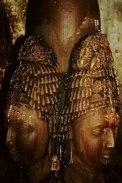 Auch das weibliche Gegenstück zum Lingam, die Yoni, ist erhalten; durch sie werden die Opfergaben der Pilger (Ghee-Butter, Reiskörner, (Kokos-)Milch, Wasser etc.), mit denen der Lingam von den Brahmanen beklebt bzw. übergossen wird, nach außen abgeleitet.