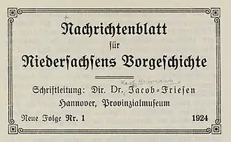 ![]() Neue Folge Nr. 1 von 1924 Schriftleiter Karl Hermann Jacob-Friesen vom – damals preußischen – Provinzialmuseum Hannover