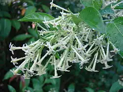 Der Nachtjasmin (Cestrum nocturnum, Syn.: Cestrum suberosum Jacq.) ist eine Pflanzenart aus der Gattung der Hammersträucher (Cestrum) in der Familie der Nachtschattengewächse (Solanaceae). Diese in der Karibik[1] und in Zentralamerika beheimatete Art ist in vielen tropischen und subtropischen Ländern verwildert.[2] Nachtjasmin wird auch als Zierpflanze verwendet, besonders wegen des starken Dufts, den sie hauptsächlich nachts und in den Abendstunden[3] verbreitet.