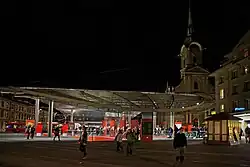 In Bern sowie in den Regionen Biel, Solothurn und Interlaken fährt der sogenannte Moonliner.[20] Im Gegensatz zu den regulären Buslinien sind die Moonliner-Linien jeweils mit einem vorangehenden M bezeichnet (beispielsweise M1 für den Moonliner nach Münchenbuchsee). Die Linien folgen zumindest teilweise den Tageslinien, die Nummerierung ist hiervon jedoch losgelöst. Abfahrtsort für den gesamten Nachtverkehr der Region Bern ist dabei der Bahnhofplatz Bern.[21] Insgesamt umfasst das Moonliner-Netz 43 Linien. Es wird von der Nachtliniengesellschaft (NLG) betrieben.